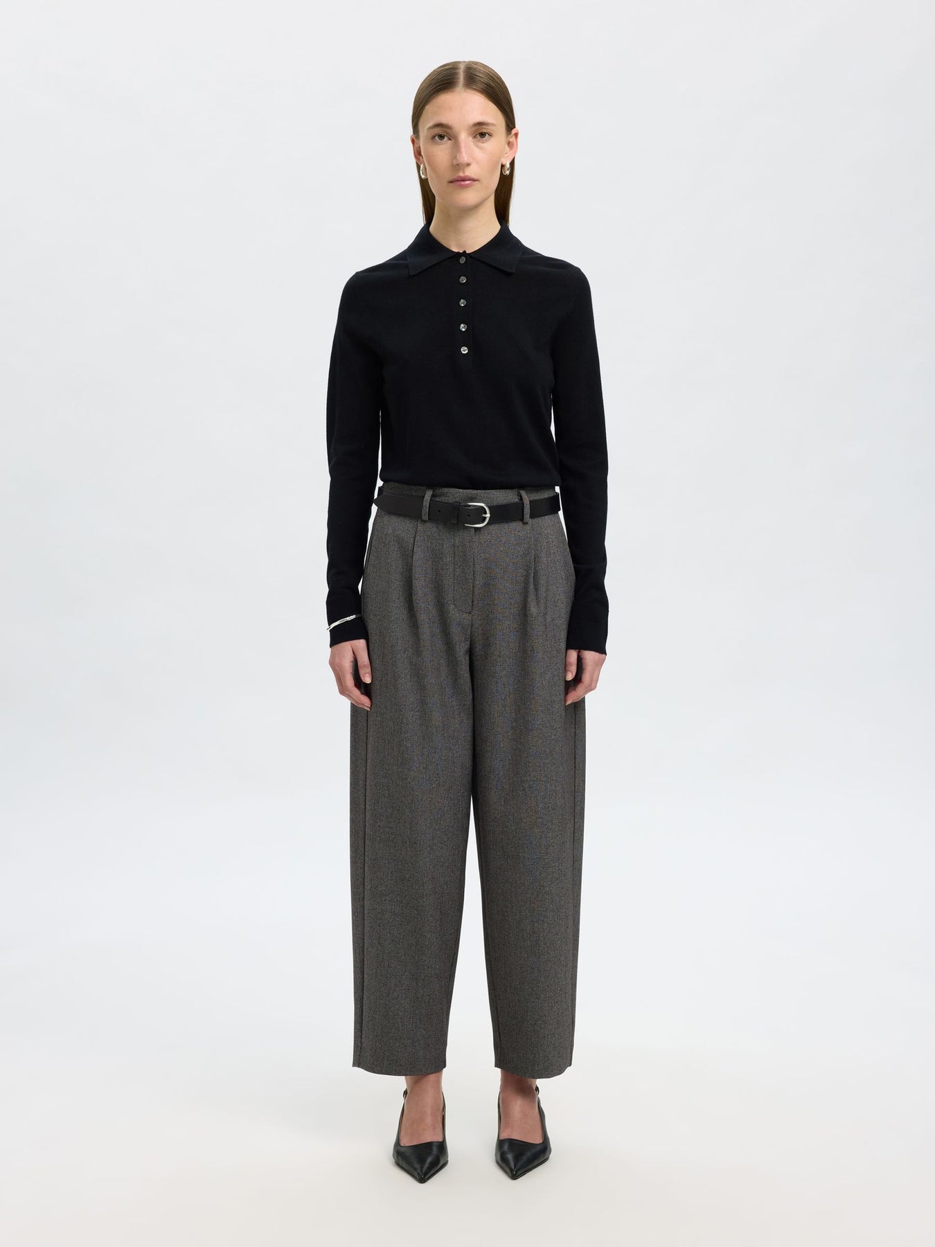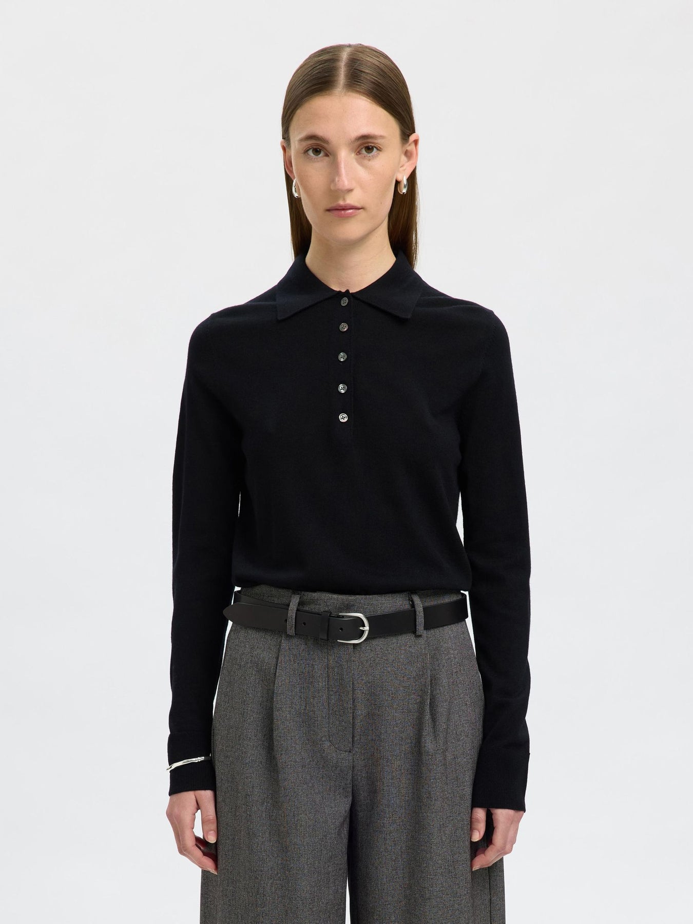 La maglia polo a maniche lunghe Selected Femme è un capo versatile e raffinato che unisce comfort e stile minimalista. Realizzata in lana merino, garantisce calore e morbidezza senza rinunciare all’eleganza. Perfetta da indossare con pantaloni sartoriali o jeans per un look essenziale ma sofisticato.